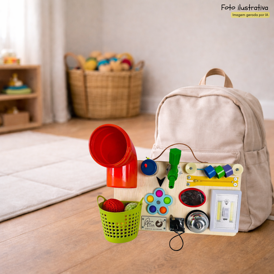 O Painel Sensorial Portátil Goiânia foi desenvolvido para acompanhar a criança em todos os momentos do dia, oferecendo estímulo, organização sensorial e entretenimento inteligente mesmo fora de casa.
