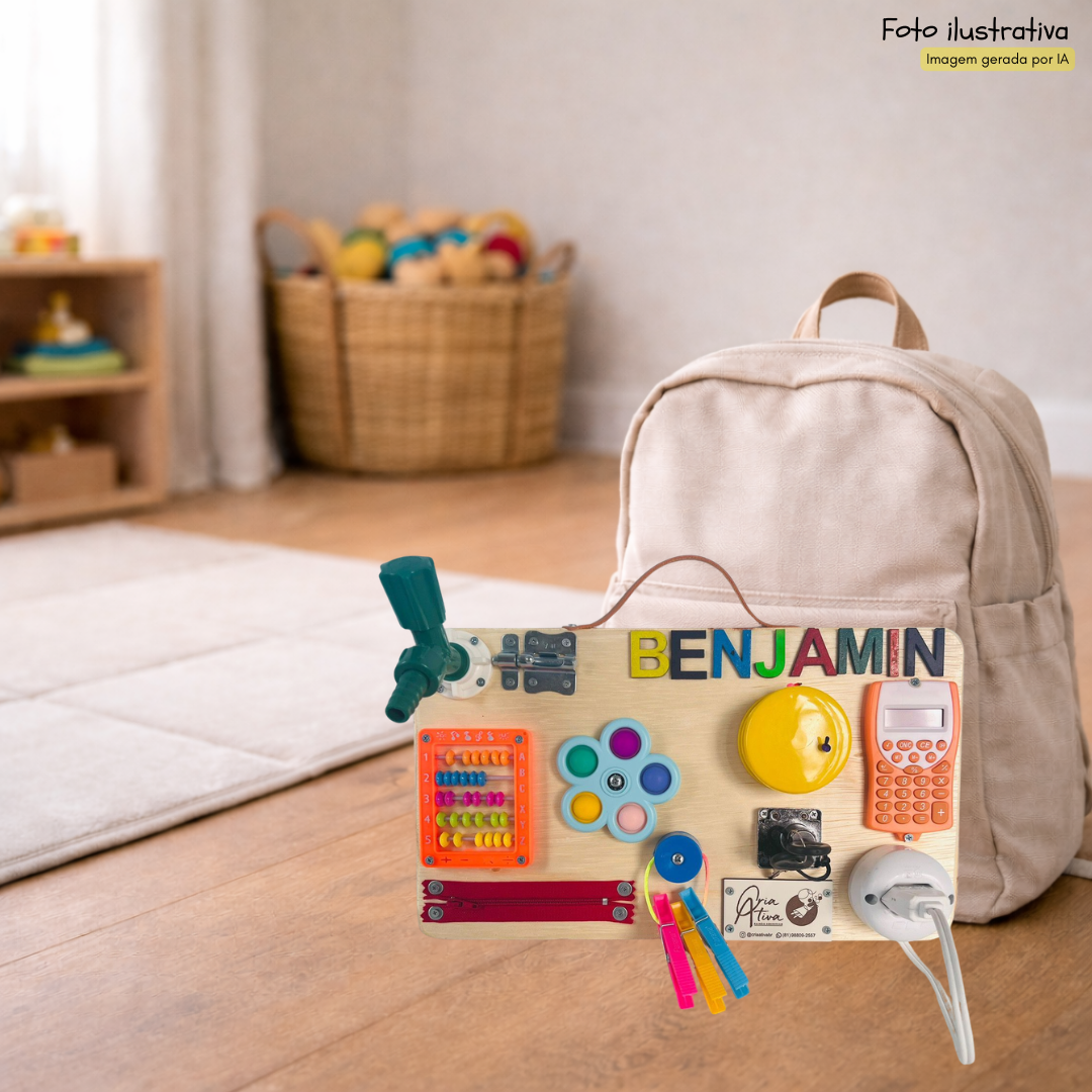 O Painel Sensorial Portátil Niterói foi desenvolvido para acompanhar a criança em todos os momentos do dia, oferecendo estímulo, autonomia e entretenimento inteligente mesmo fora de casa.