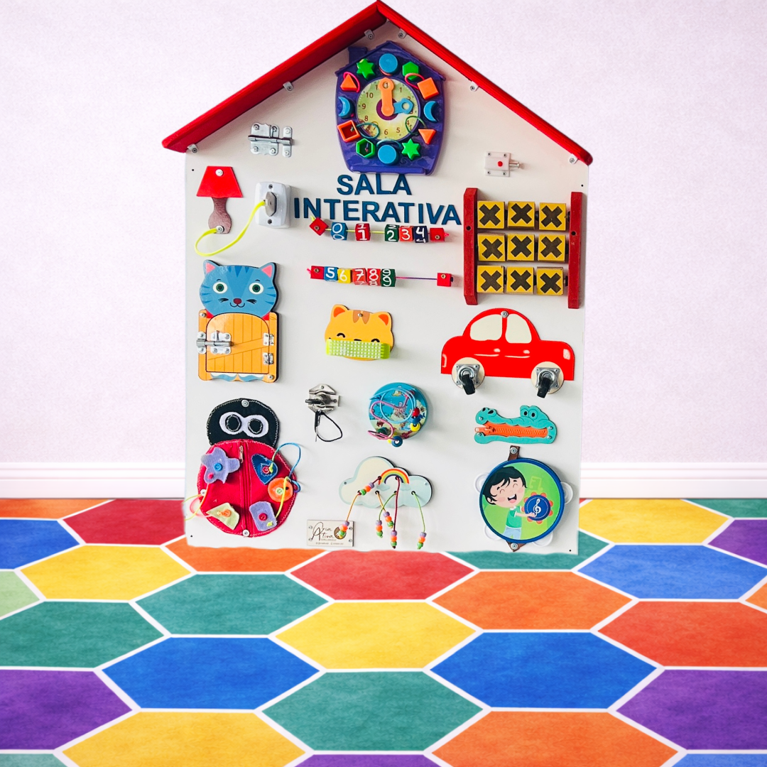 O Painel Sensorial Infantil Casinha é um recurso pedagógico e terapêutico desenvolvido para estimular coordenação motora fina, raciocínio lógico, percepção sensorial e autonomia infantil de forma lúdica e envolvente.